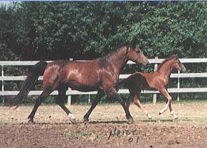 (Ashmoro Canajoharie x Cantieglen Houyhnhnm)Lippitt Gelding - Bay With Faint Star - 5-5-95 - Athletic, Great Temperament, Bone & Conformation, Very Typey, Smooth Gaits, Should finish at 15.1+H. Photo on left taken September, 1997. Photo on right taken October, 1998.